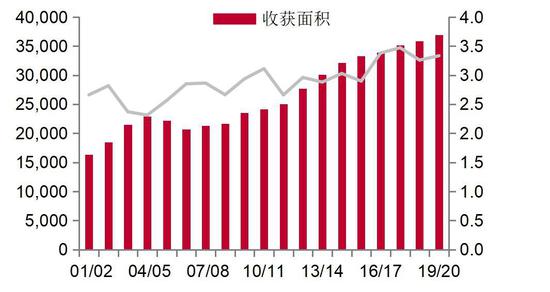 图8:2019年巴西继续扩种(千公顷,吨/公顷)
