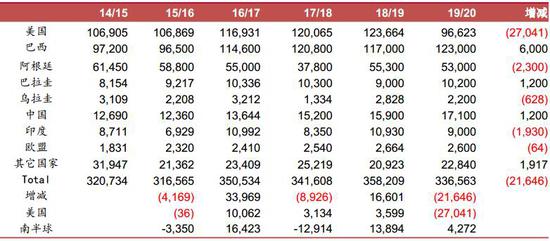 从供给端来看,19/20年度北半球产量已尘埃落定,且已被市场所交易,变量在于南美的产量,目前市场预期南美增产400万吨左右,其中巴西增产600万吨,而阿根廷减产230万吨。接下来市场交易就是南美产量预期差,决定着明年上半年阶段性行情方向。