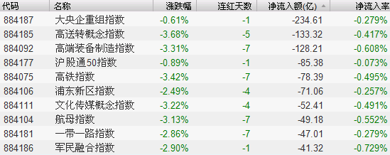 高端装备制造、高送转概念和高铁等板块也出现了明显的资金流出迹象。