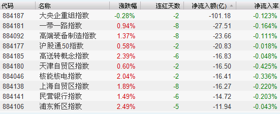 2.一带一路、高端装备制造和沪股通50等板块虽然收涨,但资金流出仍较为明显。
