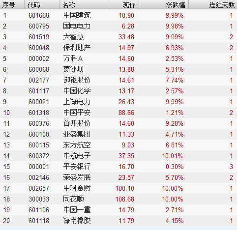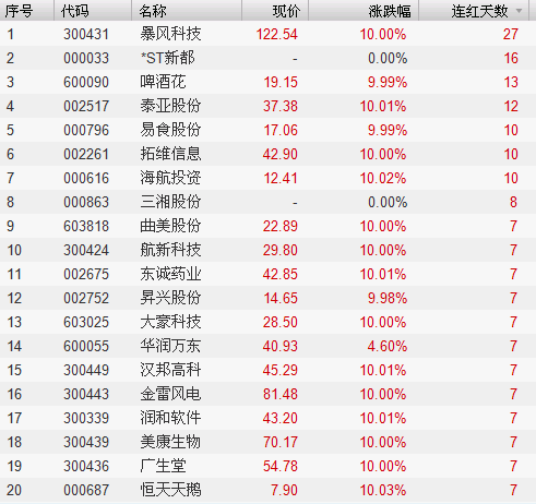 连红天数排名前20