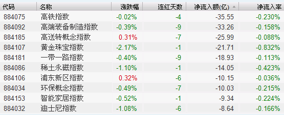 1.高铁、高端装备制造和一带一路等板块表现低迷,资金流出较为显著。