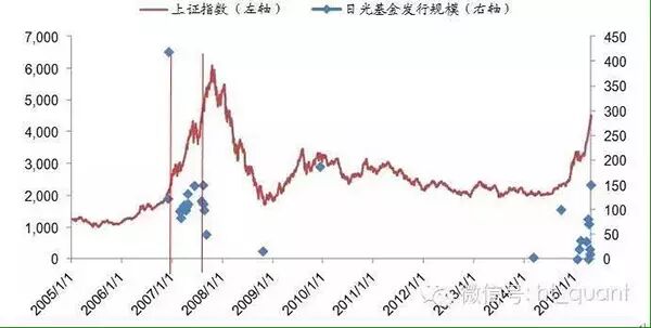 而本次日光潮中,2014年仅有2只基金日光,今年以来日光基金数量才逐步增加,2015年以来有10例基金销售日光的案例,但仅占同期发行基金数量的3.7%,平均首发规模也仅为42.48亿。无论从日光基金数量、占同期发行基金比例,还是平均发行规模来看,本轮的日光潮似乎才刚刚开始。