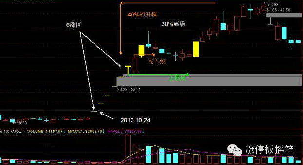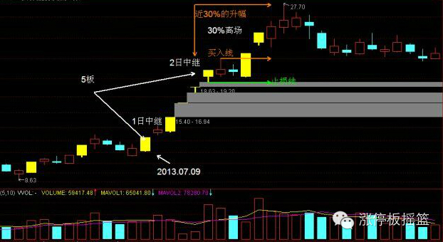 离场点:获利30%离场。(统计中看到多数中继后再向上的空间约在30—40%左右,也有些不断上扬,作为短线来说获取30—40%的短期利润应该可以接受了。)也可以选择逐步减仓操作!
