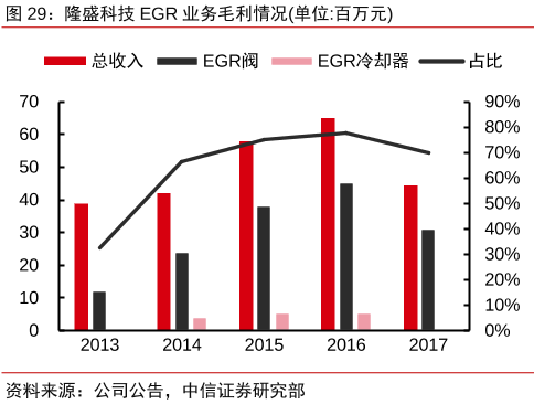 公司主营业务为发动机废气再循环(EGR)系统产品的研发、生产与销售,排放标准升级有望带给公司EGR业务爆发式增长的机会,公司同时在新能源、燃料替代以及燃料电池方面进行布局与拓展。
