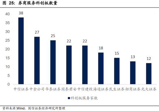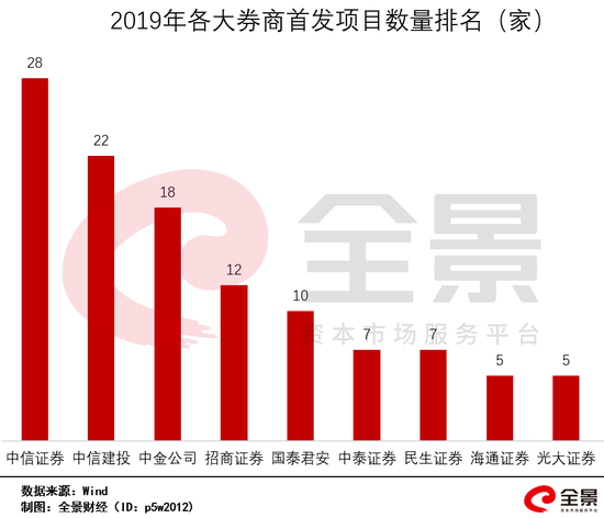 从科创板成立至今,IPO项目主要集中在龙头券商。其中,中信证券的项目数量为38家,位列第一,中金公司、华泰证券(17.820, -0.18, -1.00%)分别为27家、25家,分别位列第二、三位。