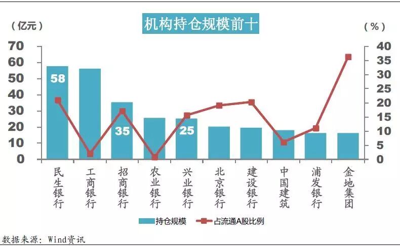 从机构持仓绝对市值规模来看,一季度期末,市值规模最大的银行板块无意外的成为机构重仓标的;值得一提的是,相比5大行,中小银行更受机构青睐,如 民生银行、 招商银行、 兴业银行、 北京银行等,机构配仓资金规模居前。