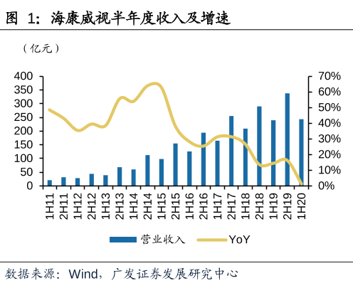 前端业务带动毛利率提升,企业级业务成为主要增长极。公司2020年上半年毛利率为49.76%,比上年同期提高3.43个百分点,主要因前端产品毛利率提升8.55个百分点。公司国内收入构成中,企事业事业群EBG收入59.14亿元,同比增长20.15%,保持相对较高增速,企事业数字化转型的需求显现,成为公司收入增长主要驱动力。