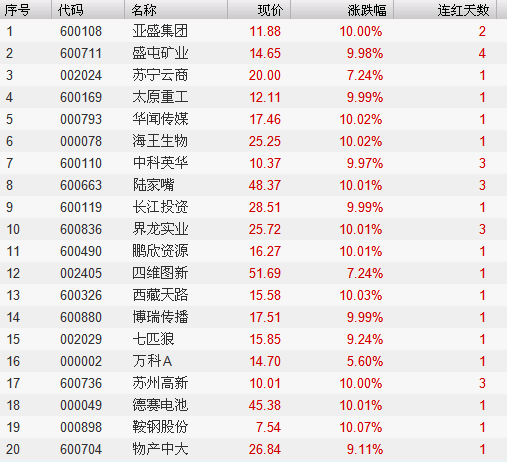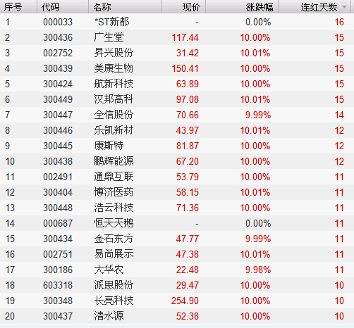 连红天数排名前20