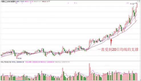 当然,如果股价一直受到20日均线支撑,那么就以20日均线作为判断行情健康与否的信号,如下图: