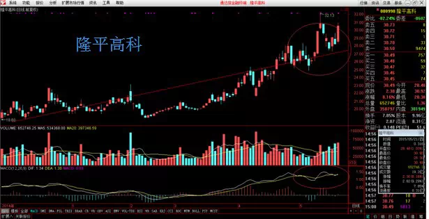 周线级别“欲擒故纵”早已出现,在2015年2月6日-4月3日,该股在周线构筑了标准的“欲擒故纵”选时结构。随后股价在周线上一直沿着5均线上行。