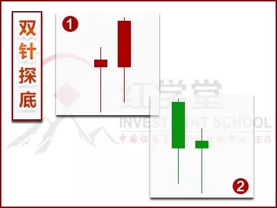 双针探底形态是指股价连续或相邻的地方出现两根带长下影线的K线,且两根下影线的最低价几乎相同,表明股价已经探明底部,中长线趋势向上有望,由于其下影线很长形似两根避雷针,因此被称双针探底。
