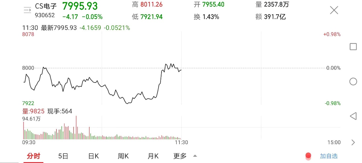 近期电子板块波动风险加剧,龙头股立讯精密、歌尔股份先后出现回撤,一时间电子凉了的声音渐起。受此影响,全市场首只电子ETF继续回调,截至上午收盘,cs电子指数微跌0.05%。