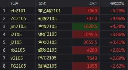 今日,商品期货全面暴涨!郑商所动力煤期货主力涨停,涨幅5%,焦煤(1613, 59.00, 3.80%)大涨4.5%创出新高;焦炭(2661, 93.00, 3.62%)/铁矿石涨超3%。此外,苯乙烯期货大涨5.5%。>>>商品期货暴涨,马上0元开户布局商品牛市行情