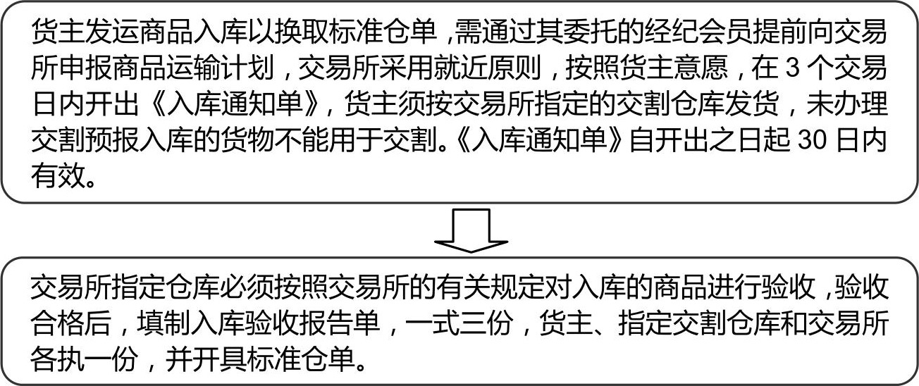 指定交割仓库或有关会员须携带标准仓单和入库验收报告单到交易所办理签发有效标准仓单手续,交易所在交割月份的最后交易日前一交易日起不再受理用于当月交割的标准仓单签发申请。