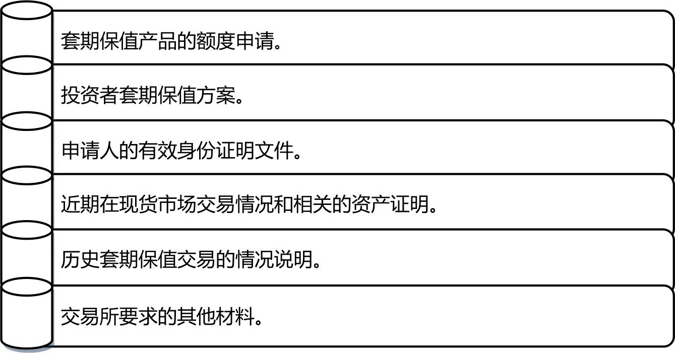 投资者在申请套期保值交易时,应当填写申请表,并提交一些证明材料,具体资料如下所示。