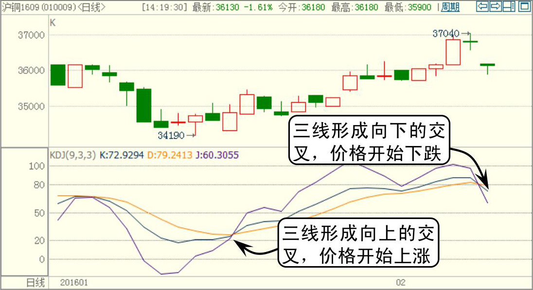 KDJ指标中有3条线,这些线随着价格的变动会不断交叉,这些交叉形态是指标发出的短期操作信号。