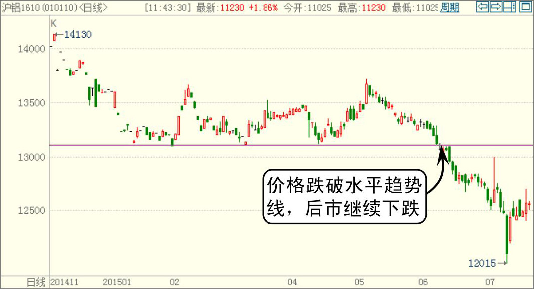 水平趋势本身仅是一个中短期的运行趋势,因此,当价格跌破水平趋势线并确定为有效突破时,即为价格结束横盘调整,开始下跌的信号,投资者不用进行修正,如图8-8所示。