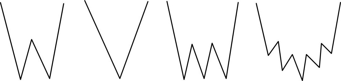 而常见的见底形态则包括W底、V底、三重底和圆弧底等形态,具体形态样式如图8-18所示。