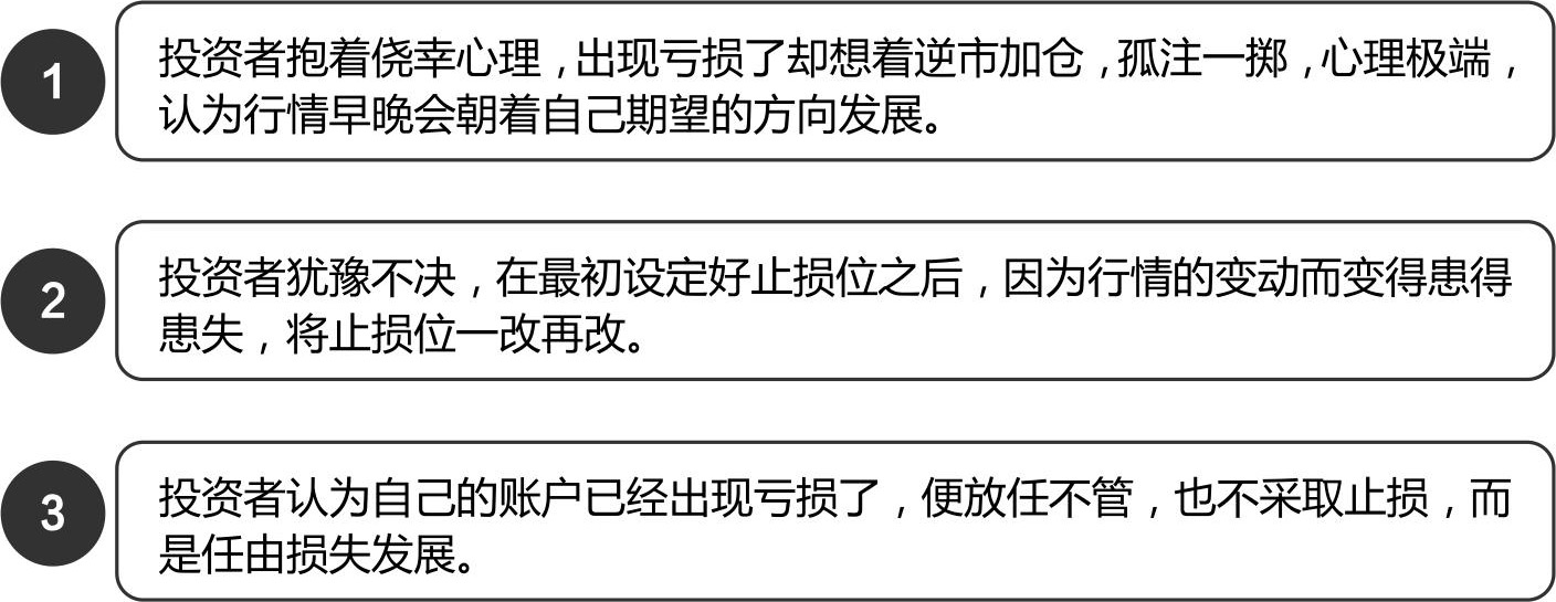 大多数投资者对于止损的认识还停留在立马会发生实际损失的观念上,因此对于止损并不接受,但是止损是将账户损失控制在目前可控制的范围内,如果不进行止损,放任损失发展,最终将酿成大祸。