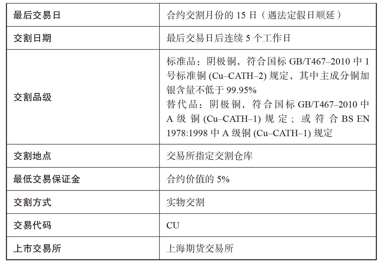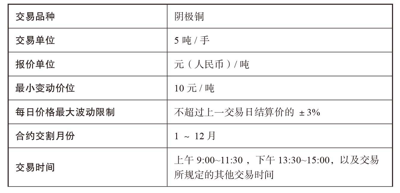 表1–1 上海期货交易所阴极铜期货合约