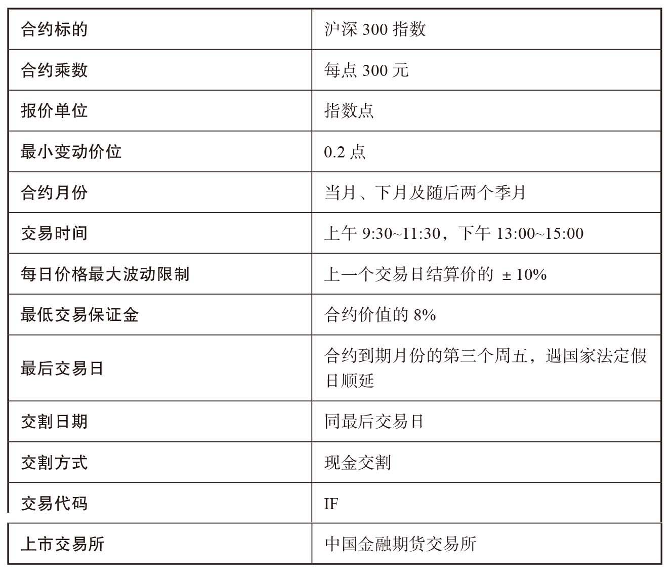 表1–2 中国金融期货交易所沪深300股指期货合约