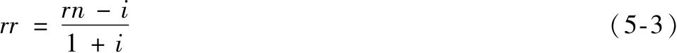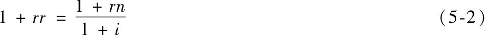 购买力增长值1+rr等于货币增长值1+rn除以新的价格水平,即1+i,由式(5-2)推导得到