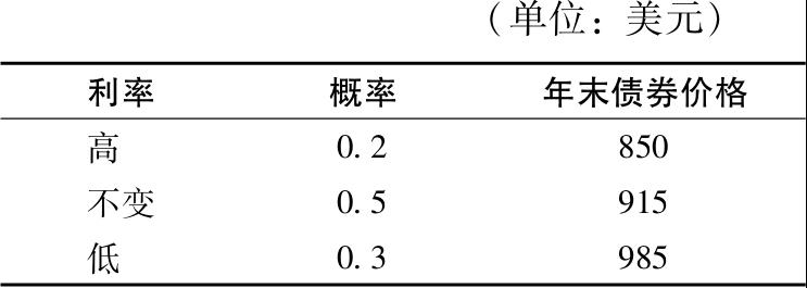 概念检查5-3你投资27000美元于一个公司债券,每1000美元面值债券售价为900美元。在第2年,1000美元债券能够提供的利息是75美元。年末债券的价格取决于当时的利率水平。你依据以下情境分析: