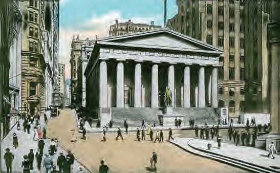 道路、运河、建筑物、公园、煤气厂、自来水厂等都属于国家财富。在这些物质财产中,有些是依靠向公众借款建造的,这些借款即债务,是负财富,在统计国家财富时,需要扣除这些负财富。图为原美国库务署,现为联邦大厅国家纪念馆,它作为建筑物是国家财富的一种。但它究竟是不是负财富就要看建造它的资金是否是借款了。