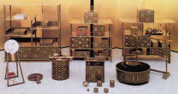 一个人拥有的财富由他拥有的物质财货和非物质财货组成。物质财货可以用来转让和交换。土地、房屋、家具、机器和其他一些可以单独私人拥有的有形的东西都属于物质财货。图中是日本新娘出嫁时的陪嫁品,这些家具属于物质财货的一种,它们是可以用于交换的。