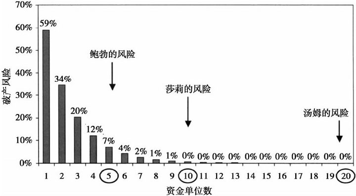 现在,在我继续下面的内容之前,需要补充说明的是,从数学意义上而言,破产风险不可能达到0%(0.0%)。然而,让破产风险降到1%的一半以下(0.5%)是肯定有可能的。