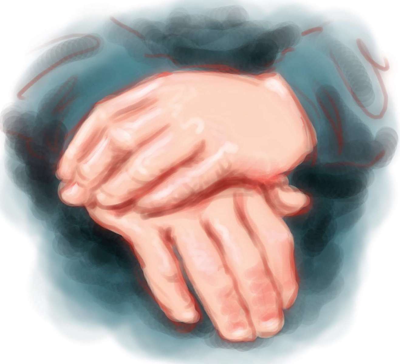 我早已发现,我大儿子的手很像他外公,都是手指头有点方,甲床不是浑圆的,而是像茶杯。但最相似的地方是我们的手摆放的方式。父亲、我和儿子在边散步边想事情的时候,都会把手放到身后,而且都会如出一辙地用左手握住右腕。