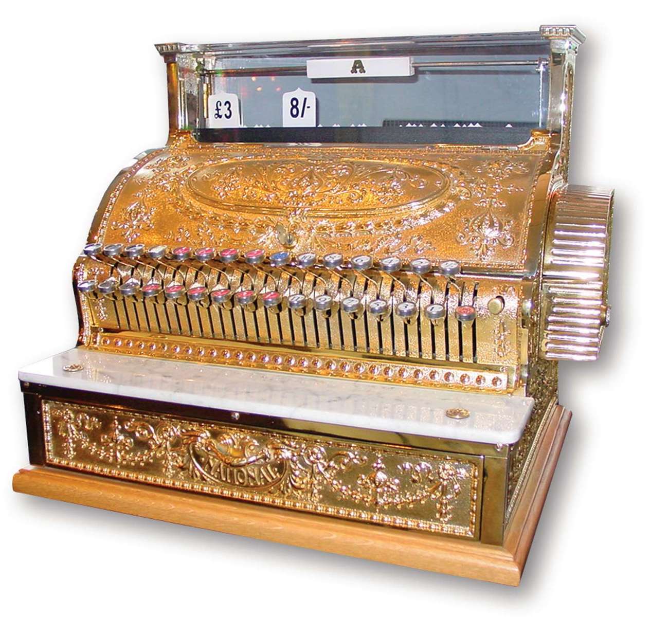 收款机是对文明社会的重大贡献。 它是一个很有意思的故事。帕特森是个小零售商,没赚到什么钱。有一天,有人卖给他一台早期的收款机,他把它放到商店的收银台。这台收款机立刻让他扭亏为盈,因为有了它之后,店里的职员想偷钱就难多了。