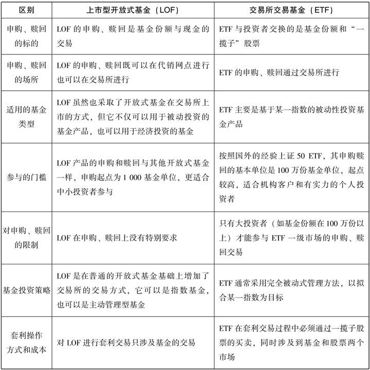 表3-2 上市型开放式基金(LOF)与交易所交易基金(ETF)的区别