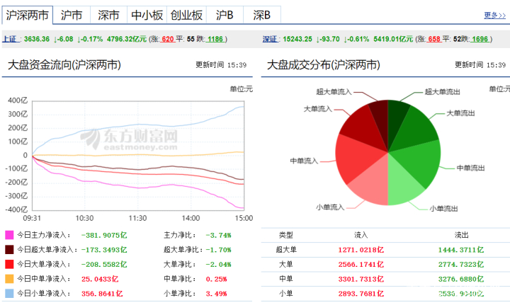 【收评:股指弱势整理沪指跌0.17% 军工股强势】周二早盘,三大股指低开,盘初白酒、军工等先后走强,带动指数拉升翻红,随后走势分化,沪指震荡偏强,深成指、创指翻绿下行;午后集体翻红,沪指一度涨0.8%,尾盘再度走弱。盘面上,两市个股跌多涨少,涨停90余家。从盘面上看,多数板块飘绿,军工、航运、油气、白酒、银行、医药等板块居涨幅榜前列;农业、煤炭、网游、数字货币、光刻胶、汽车等板块居跌幅榜前列。截至收盘,沪指报3636.36点,跌0.17%;深成指报15243.25点,跌0.61%;创业板指报3112.36点,跌0.84%。北向资金今日净买入6.51亿元。