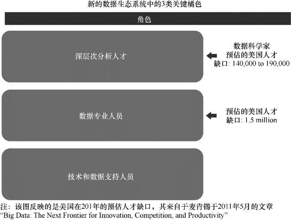 麦肯锡研究报告预测,到2018年美国将会有14万到19万个深层分析人才的缺口。这并不是指市场所需要的深层分析人才的总量,而是表示市场人才需求量和市场可用人才的缺口。这个预测只是反映了美国人才的短缺,相信这个数字在全球范围内会更大。
