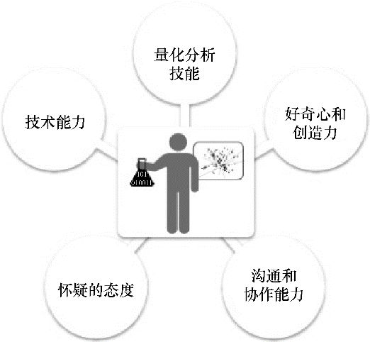 数据科学家通常应该具备以下5项主要技能和行为特征,如图1.13所示。