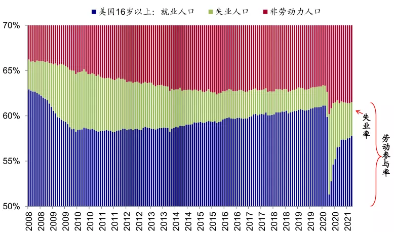 图表:若要失业率和劳动参与率都回至疫情前的话还有~890万的就业缺口,即便按照3月修复速度也需要10个月