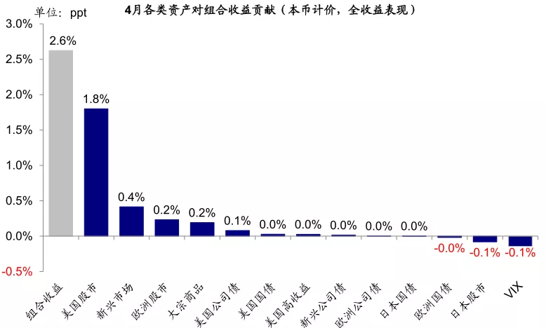 图表: 4月,我们的海外资产配置组合上涨2.62%(本币计价)
