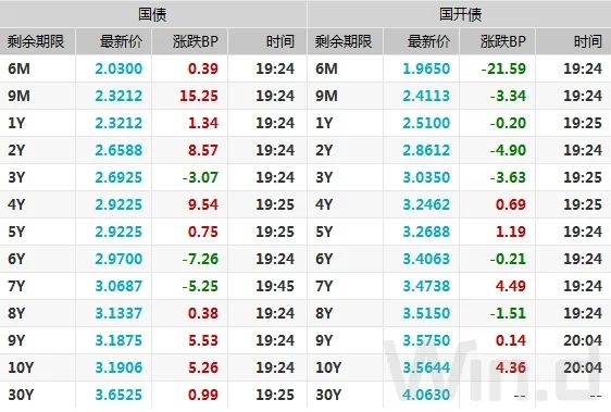 2、农发行1年、10年期固息增发债中标收益率分别为2.1%、3.5038%,投标倍数分别为9.5、4.29。