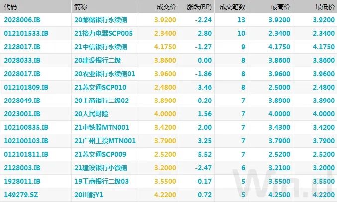 最活跃利率债成交统计(BBQ):