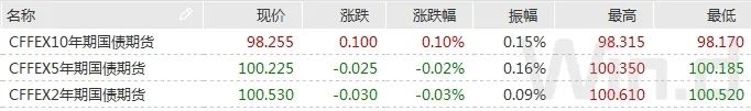 周三,国债期货收盘涨跌不一,10年期主力合约涨0.10%,5年期主力合约跌0.02%,2年期主力合约跌0.03%。A股低开高走,但量能有所收窄;沪指录得三连升,创业板指宽震上涨;上证指数收盘涨0.61%,深证成指涨0.7%,创业板指涨1.34%,万得全A涨0.74%。