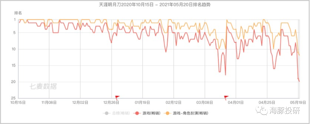 数据来源:七麦数据(天涯明月刀畅销榜排名)