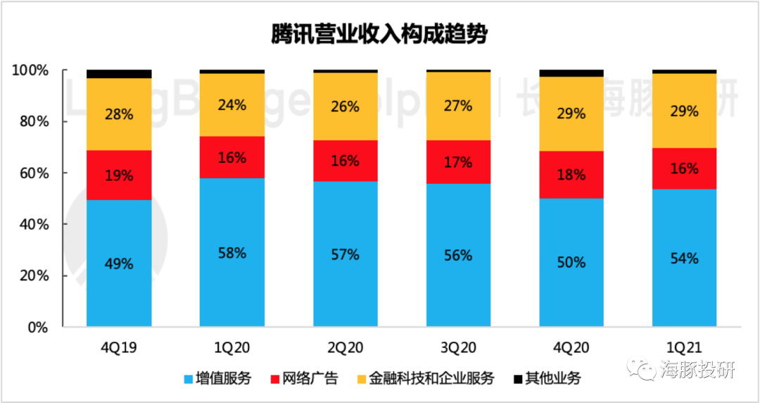 尤其是增值服务业务,作为腾讯的第一支撑业务,在互联网各平台为流量争夺厮杀,既而堆高流量成本的过程中,作为互联网内容最丰富的腾讯,在这场战役明显是受益方。