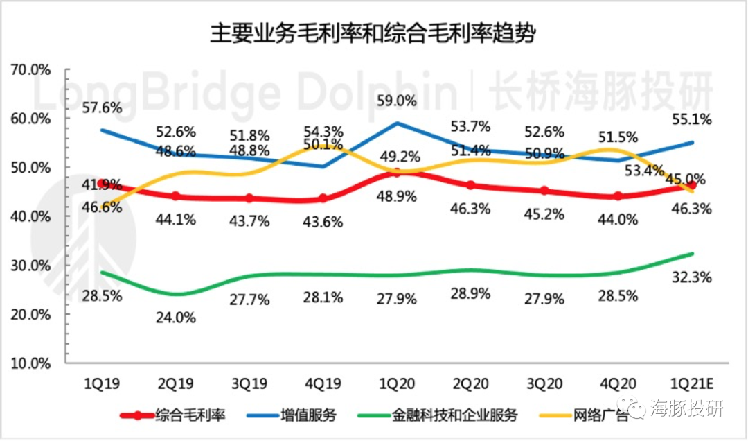 从不同业务的毛利率情况来看,除了由于流量成本增加而影响利润水平的广告业务,其他主营均存在显著优化。
