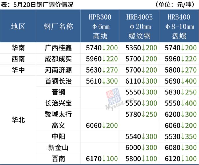 20日,全国11家建筑钢材生产企业下调出厂价100-400元/吨。