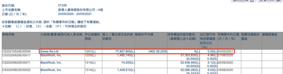 港交所披露易信息显示,5月24日,瑞士再保险(Swiss Re Ltd)在场内减持新华保险7785.78万股H股股份,成交均价为29.2港元/股,成交金额22.73亿港元。此番减持后,瑞士再保险持有的新华保险股份“清零”。