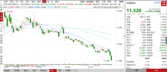中国恒大尾盘跳水跌近5% 股价创逾1年新低