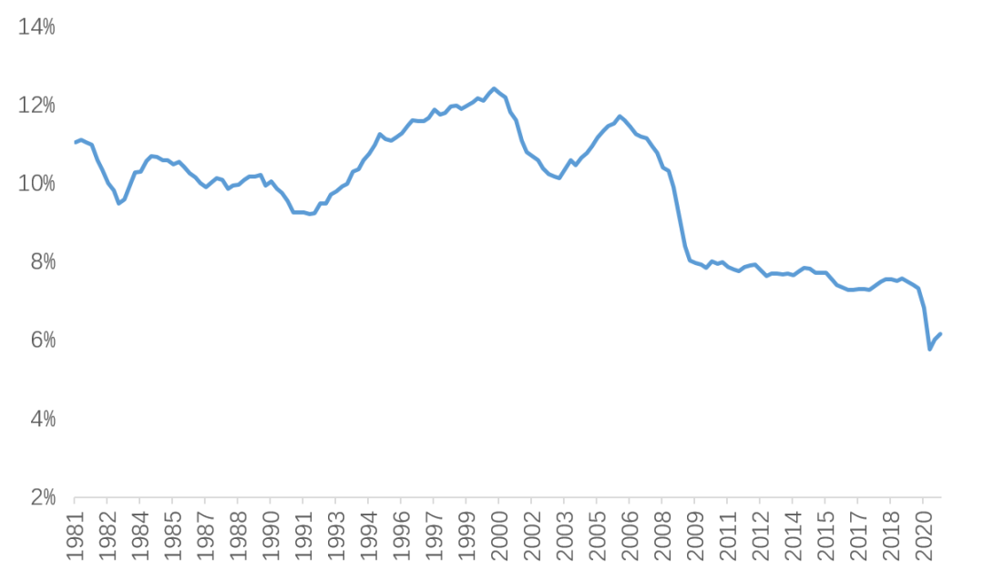 图6:美国纽约联储对居民储蓄率在三轮财政刺激后的储蓄率