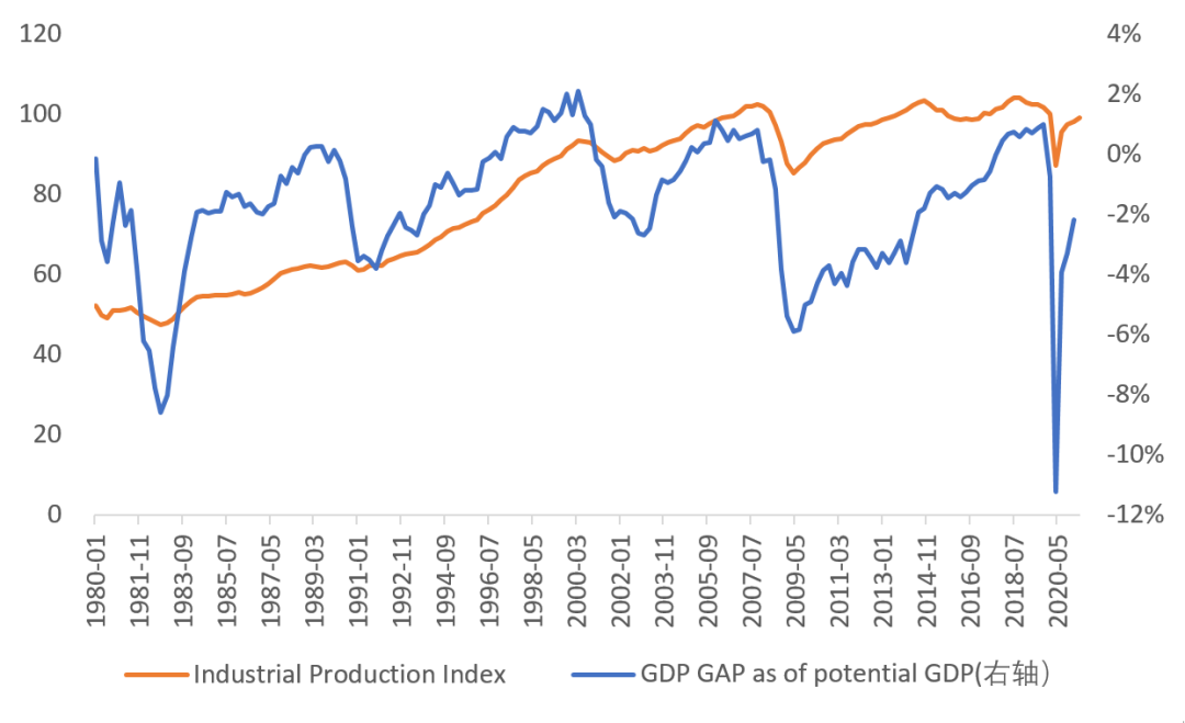 新冠疫情没有提升生产效率,没有带来潜在经济增速的提高,也没有解决贫富差距、结构分化的问题,反而降低了效率、放大了矛盾、扭曲了结构、压制了潜在增速。我们预计美国经济最快在2021年四季度实现产出缺口转正,在2022年复苏放缓后回到新的潜在增速水平,但这个新的水平将会低于疫情前。